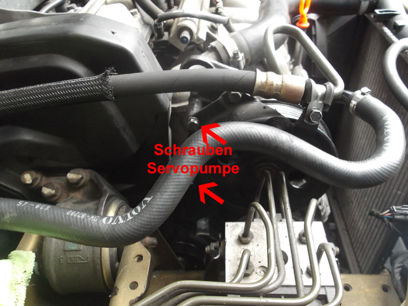 Als erstes Schraubte ich den Motordeckel ab, um für meinen Teil Licht in dunkle zu bringen und schraubte dann die Servopumpe los, die Schrauben dazu fand ich eine Vorne und zwei auf der linken Seite. Die Halterung habe ich auch entfernt.